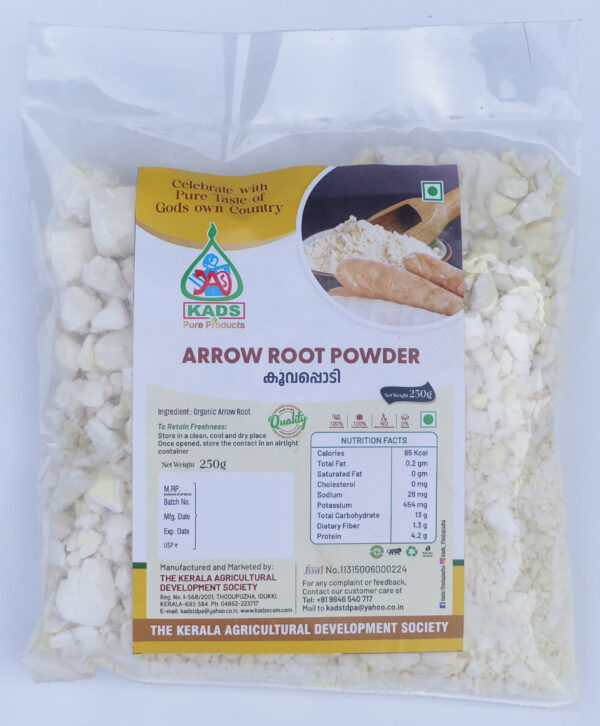 Traditional Kerala arrowroot powder carefully prepared by KADS, finely processed to maintain its natural purity and smooth texture. A wholesome and authentic ingredient for healthy cooking.