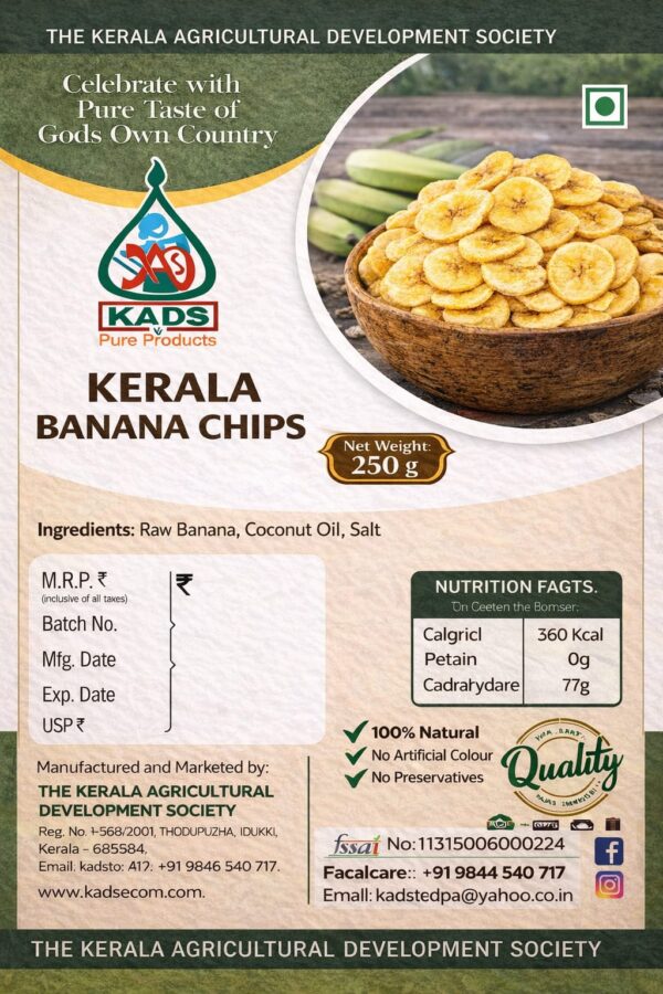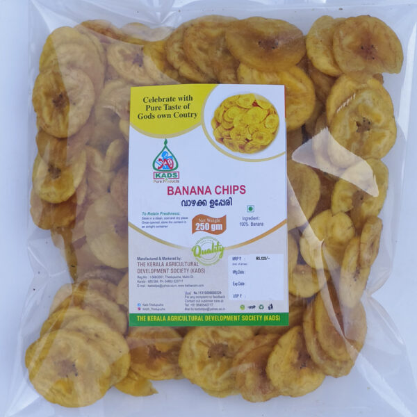 Crispy Banana Chips by KADS, made from naturally grown bananas and fried in pure coconut oil to deliver an authentic Kerala taste and rich flavor in every bite
