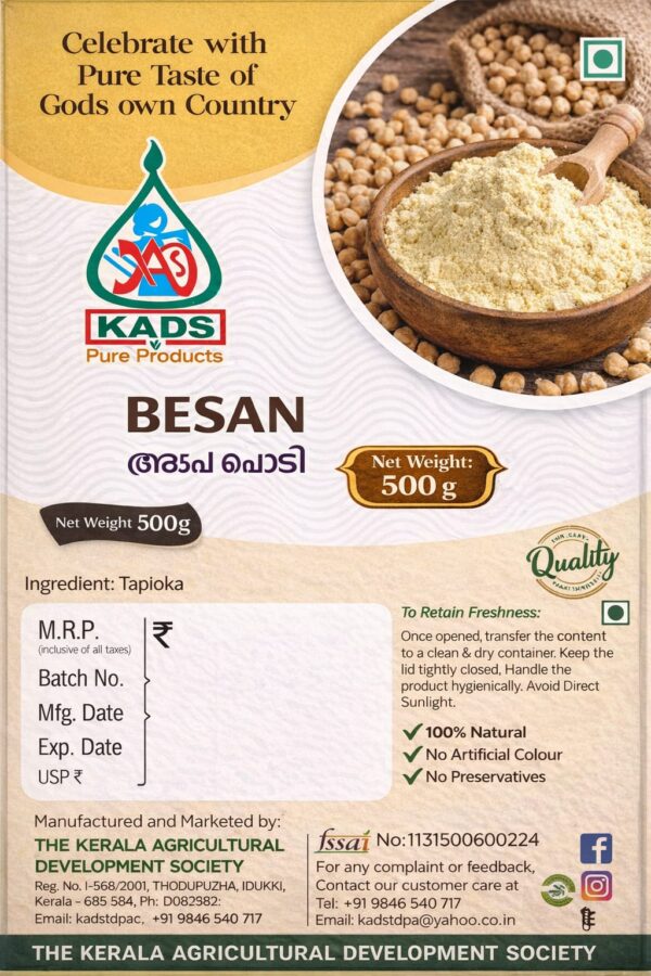 High-quality Besan Powder by KADS, finely milled from selected gram to ensure smooth texture, natural flavor, and excellent quality for a variety of traditional dishes and snacks