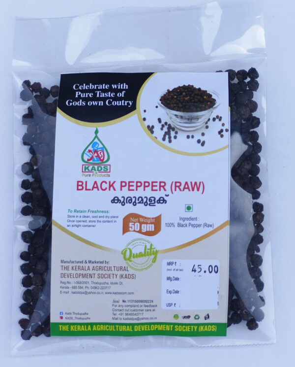 Premium Raw Black Pepper by KADS, carefully collected from Mankulam Jaiva Gramam, known for its natural and organic farming practices, ensuring rich aroma, strong flavor, and authentic quality.