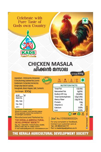 Enjoy the rich and authentic taste of chicken with KADS Chicken Masala, a carefully blended mix of natural spices that enhances flavor and aroma in every dish.