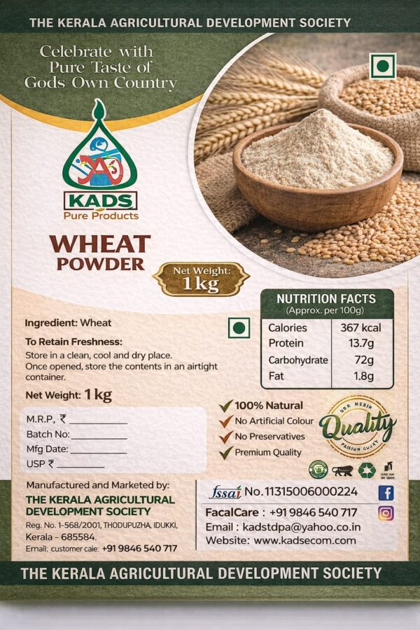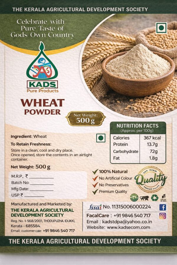 Pure Wheat Powder by KADS, made from 100% carefully selected wheat and hygienically processed to ensure natural taste, freshness, and quality for everyday cooking.
